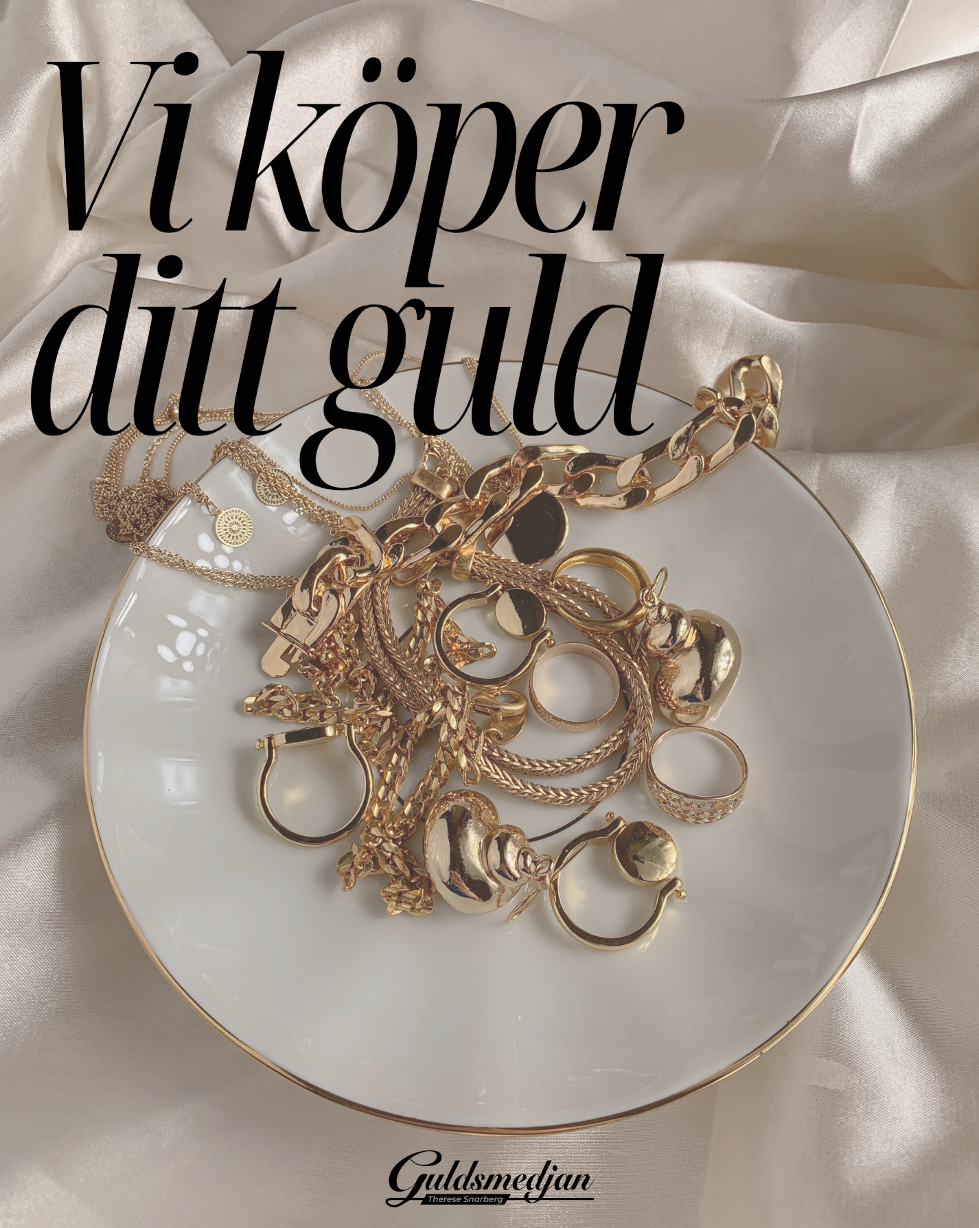 Lämna in ert guld till oss och sälj eller återvinn för tillverkning av nya smycken. Vi säljer även hela och fina smycken vidare i vår second hand-avdelning, ett hållbart alternativ för miljöns skull.