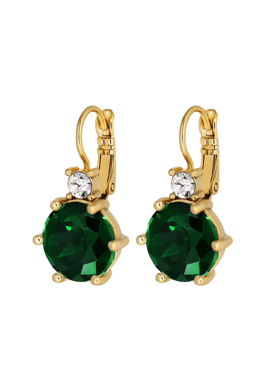 BEGONIA - vackert smycke med stängd öronkrok där den enda dekorationen är en större rund facetterad och handsatt kristall toppad av en mindre kristall. Enkelt men elegant. Cirka. längd 25 mm. DANSK DESIGN - fri från kadmium, nickel och bly